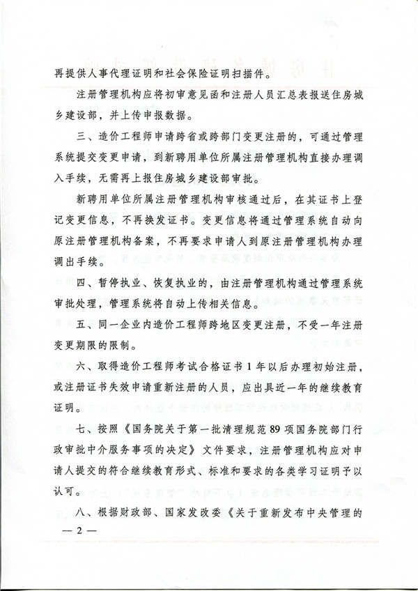 造价工程师注册审核有关事项的通知(建标造函[2016]8号)